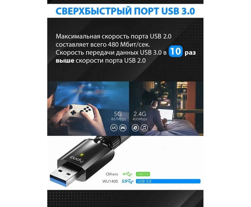 Wi-Fi USB адаптер CUDY WU1400 черный