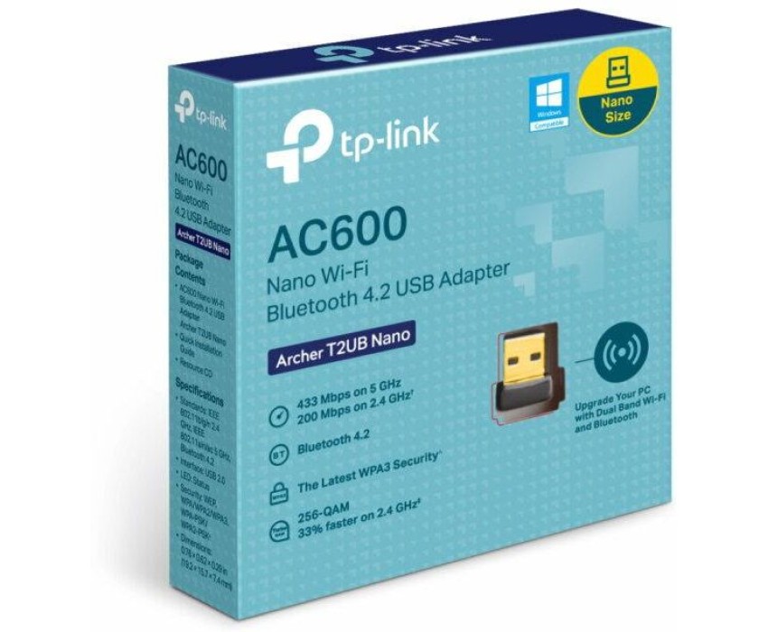 TP-LINK Archer T2UB Nano AC600 Ультракомпактный двухдиапазонный Wi-Fi USB-адаптер Bluetooth 4.2