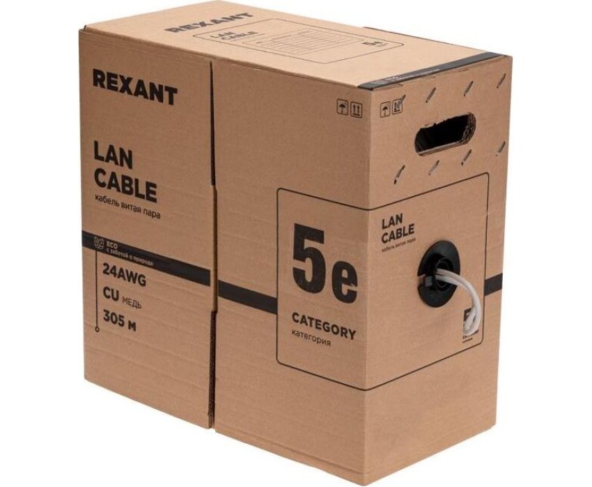 REXANT Кабель витая пара F/UTP, CAT 5e, PVC, 4PR, 24AWG, INDOOR, SOLID, серый, 305м, РФ