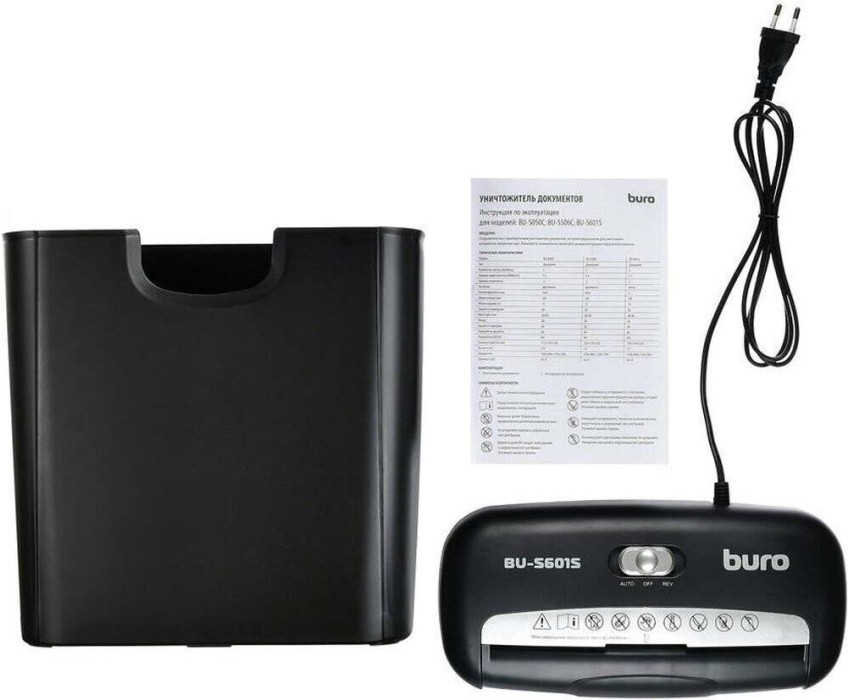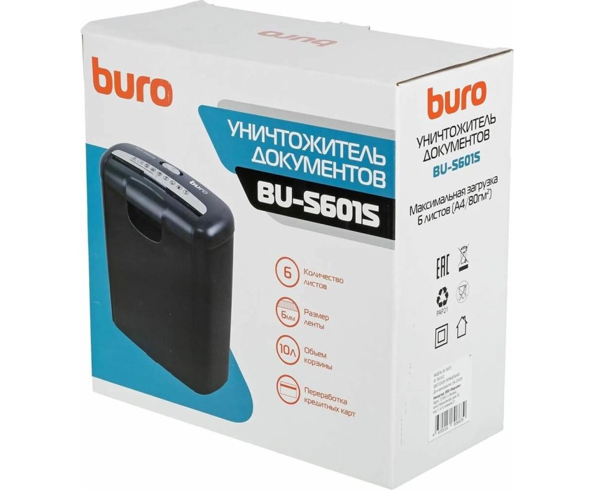 шредеры BURO Уничтожитель бумаг Home BU-S601S, P-1, 6 мм, 6 лист. одновременно, 10л