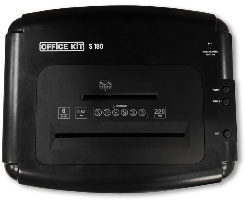 шредеры OFFICE KIT Уничтожитель бумаг S180 (0,8x1), P-7, 0,8x1, 5 лист. одновременно, 32л [ok0101s180]