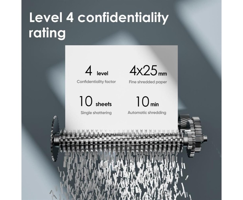 Одновременно листов, до: 8. Тип резки: фрагменты. Средняя скорость: 1.98. Ширина загрузочного слота: 220. Емкость корзины: 16. Класс секретности: уровень 4. Уровень шума: 60. Индикатор переполненной корзины: ДА. Индикатор перегрева двигателя: ДА. Автостарт: ДА. Автореверс: ДА. Макс. время работы: 10. Необходимое время перерыва: 30. Вес товара: 8.17. Уровень секретности DIN 66399 для бумаги: P-4. Размер фрагментов: 4х25 мм. Автоподача: есть. Габариты упаковки (ед) ДхШхВ: 0.465x0.291x0.55. Вес упаковки (ед): 8.19. Гарантия: 12 мес.. Размеры (ШхВхГ): 410х545х290 мм. Тип резки: фрагменты, 4х25 мм. Одновременная загрузка, листов: 8. Объем корзины: 16 л. Особенности: автостарт, автореверс, автоподача. Класс секретности: уровень 4. Уровень секретности по DIN 66399: P-4