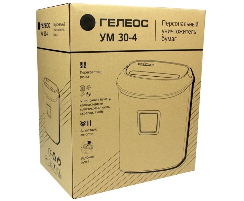 шредеры HELEOS Уничтожитель бумаг УМ30-4, P-4, 3.8х35 мм, 14 лист. одновременно, 30л