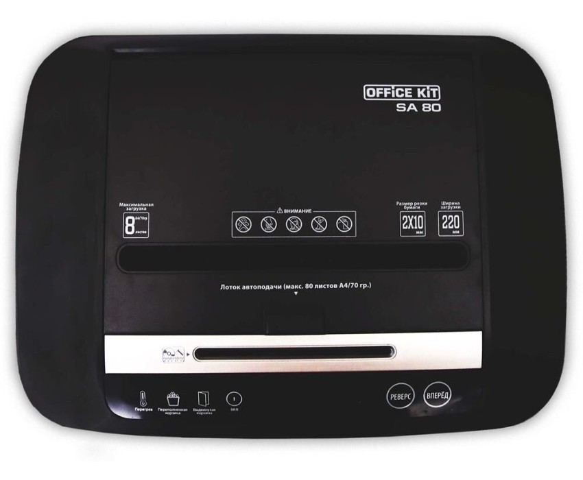 шредеры OFFICE KIT Уничтожитель бумаг SA80 2x10, с автоподачей, P-5, 2x10 мм, 80 лист. одновременно, 20л [ok0210sа80]