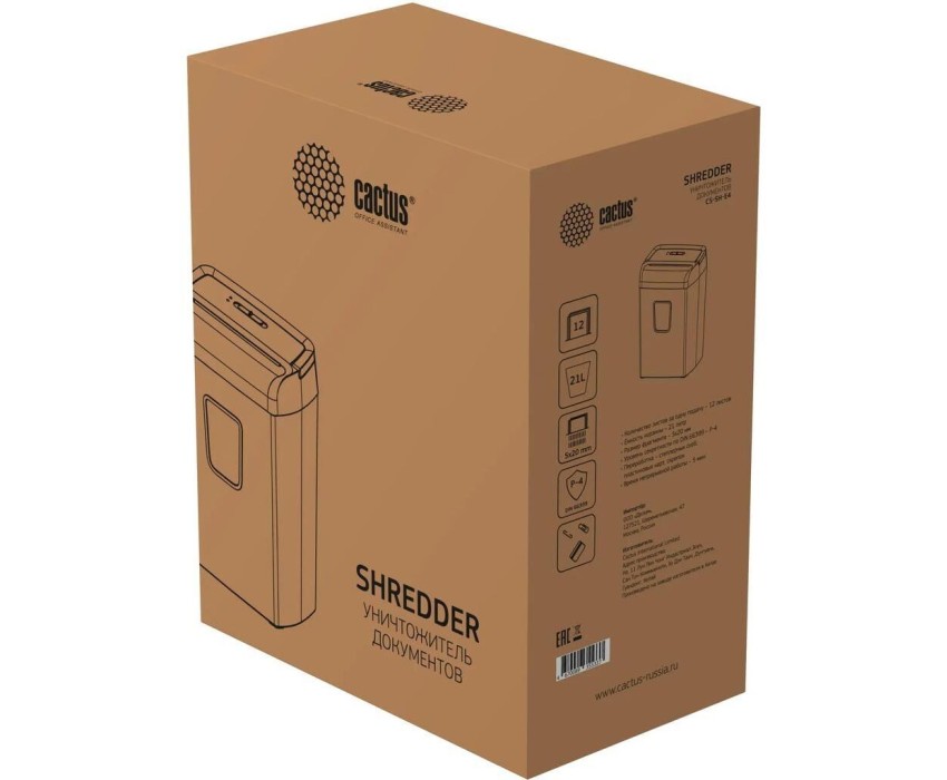 CACTUS Уничтожитель бумаг CS-SH-E4, P-4, 5X20 мм, 12 лист. одновременно, 21л