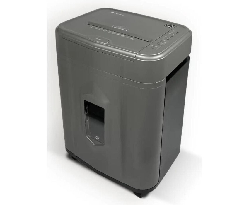 HELEOS Шредер АП23-5 серый/серебристый с автоподачей (секр.P-5) фрагменты 145лист. 23лтр. скрепки скобы пл.карты