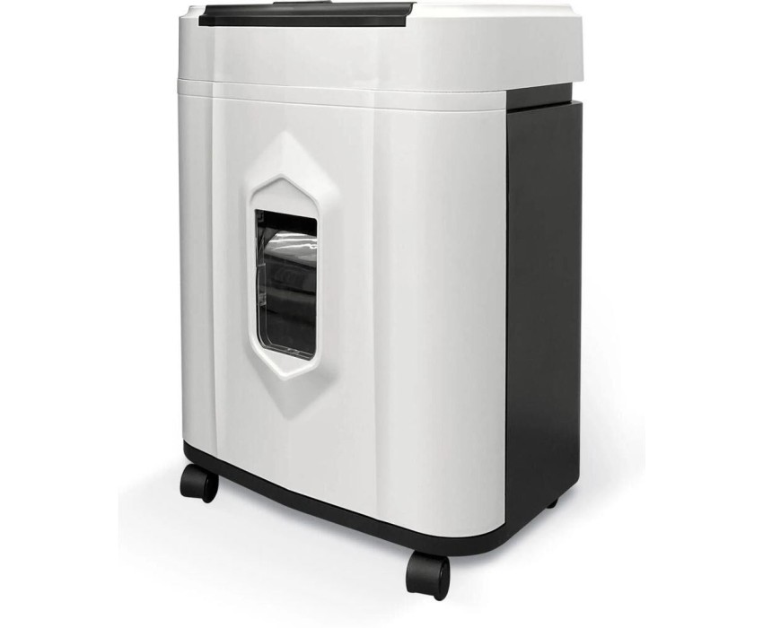 HELEOS Шредер АП20-5 белый/черный с автоподачей (секр.P-5) фрагменты 131лист. 20лтр. скрепки скобы пл.карты