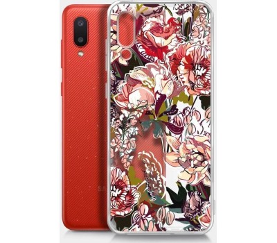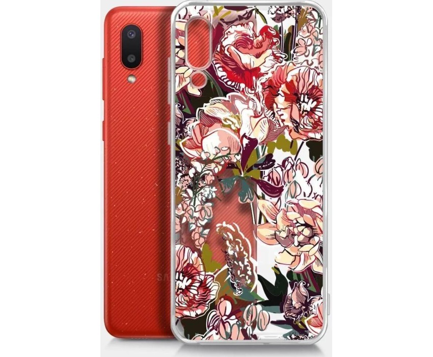 Тип: Чехол (клип-кейс). Комплектация: Чехол, упаковка. Соотношение сторон экрана: 20:9. Габариты упаковки (ед) ДхШхВ: 0.24x0.01x0.14. Вес упаковки (ед): 0.03. Страна производства: Китай. Поверхность: глянцевая. Особенности дизайна: с рисунком. Тема: цветы и растения. Гарантия: 6 мес.. Материал чехла: силикон. Внешние размеры (ШхВхТ): 77 х 166 х 10 мм. Цвет: прозрачный/рисунок. Назначение: для Samsung Galaxy A02. Особенности чехла: узор. Дополнительные функции: беспроводная зарядка. Особенности: узор. Цвет: прозрачный/рисунок. Совместимость: для Samsung Galaxy A02. Материал: силикон. Функции: беспроводная зарядка
