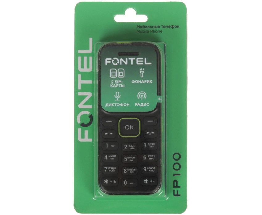 Телефон мобильный FONTEL FP100 черно-зеленый