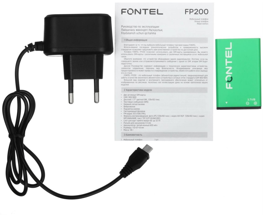 Телефон мобильный FONTEL FP200 черно-зеленый