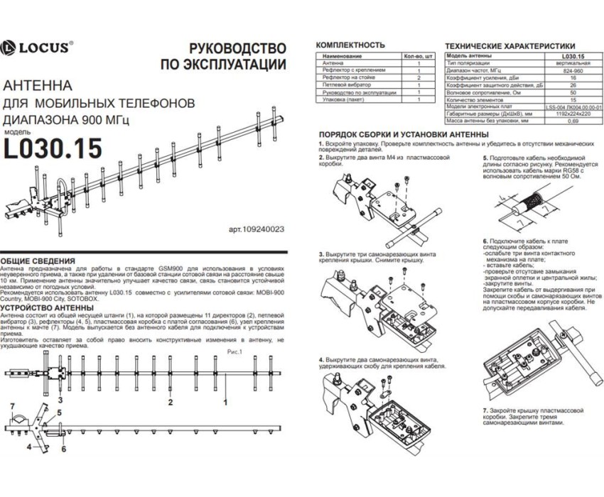 Антенна наружная, для работы в стандарте GSM -900( 824-960 МГц), коэффициент усиления - 16дБи ,волновое сопротивление, Ом - 50, количество элементов - 15, для использования в особо сложных условиях приема, связь становится устойчивой независимо от погодных условий, уверенный прием при удалении от базовой станции сотовой связи на расстоянии - свыше 10 км.