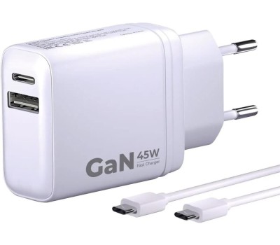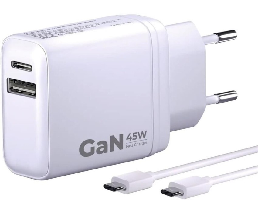 BORASCO Сетевое зарядное устройство USB + USB type-C, USB type-C, 45Вт, 3A, белый [52389]