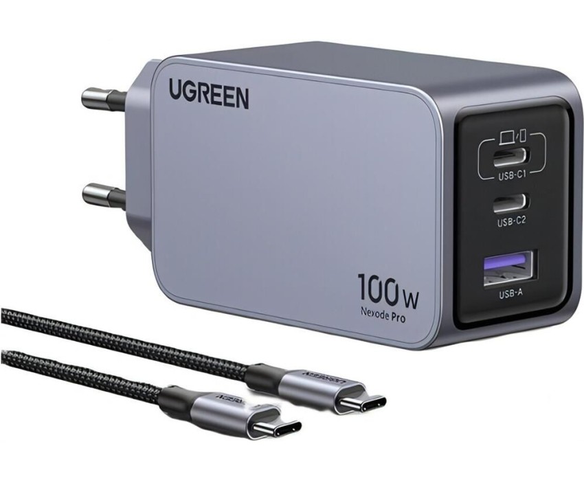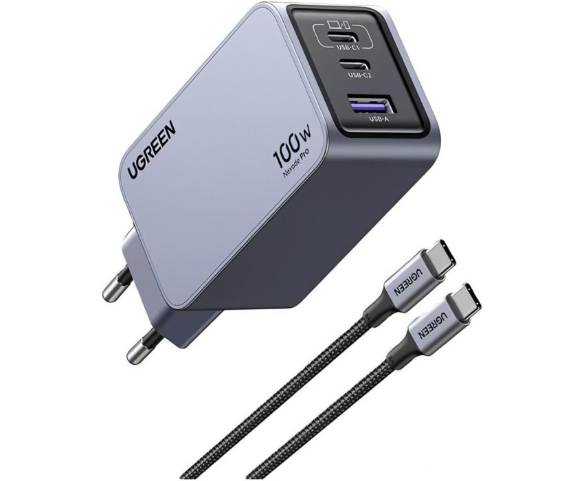 UGREEN Зарядное устройство X757 (25874) Nexode Pro 100W USB-A+2*USB-C GaN Tech Fast Charger EU с кабелем 1M 100W. Цвет: серый