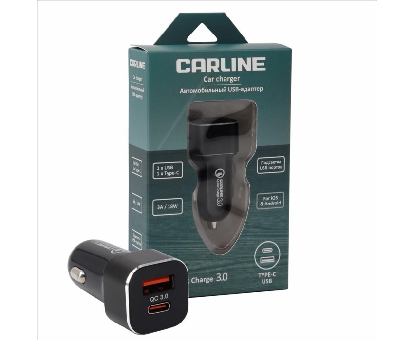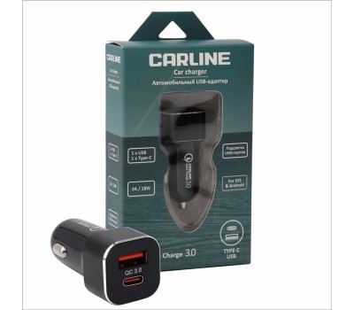 Адаптер CARLINE Адаптер ® д/авто 2хUSB (USB QC 3.0 + PD Type C) в прикуриватель 12/24В/черный/уп. коробка