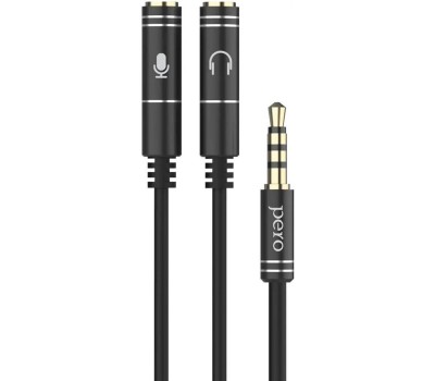 PERO Переходник AD-08, Jack 3.5 (m) - 2хJack 3.5 (f), 0.34м, черный [prad08msbk]