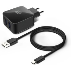 BORASCO Сетевое зарядное устройство 2xUSB, microUSB, 2.1A, черный [20649]