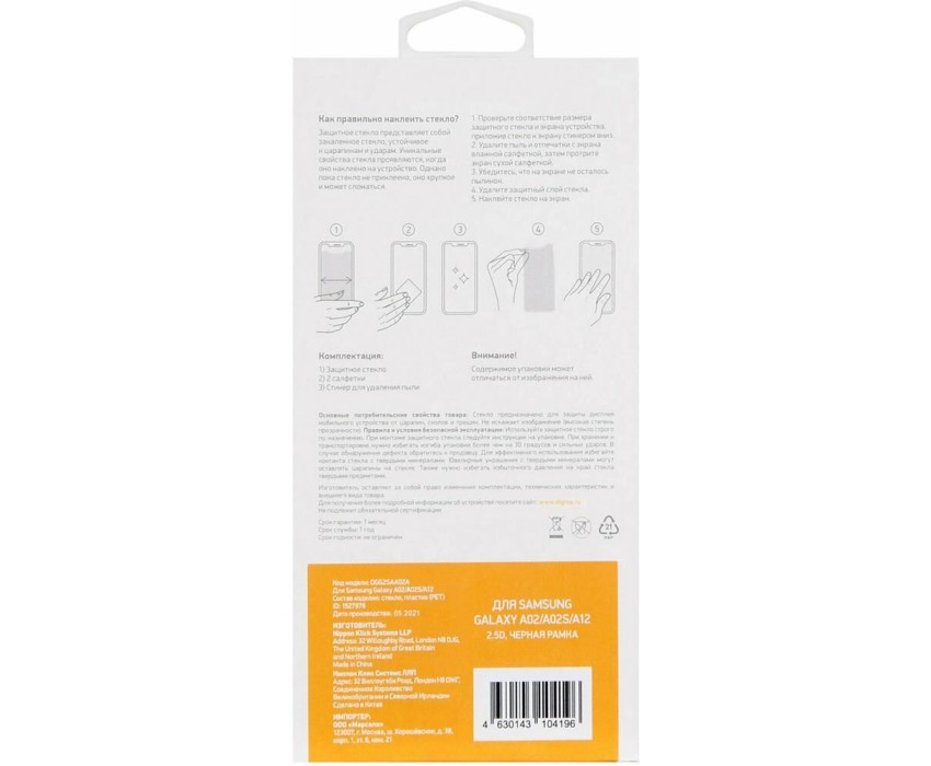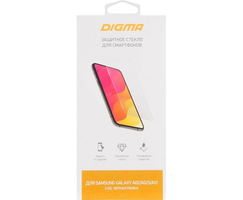 DIGMA Защитное стекло для экрана 2.5D черный Samsung Galaxy A02/A02s/A12/A03s 1шт. (DGG2SAA02A)