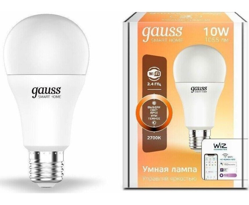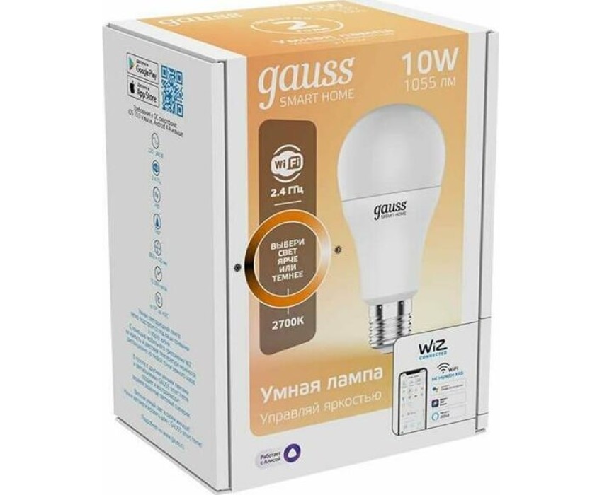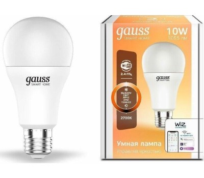 GAUSS Умная лампа Smart Home E27 белая 10Вт 1055lm Wi-Fi (1шт) [1070112]