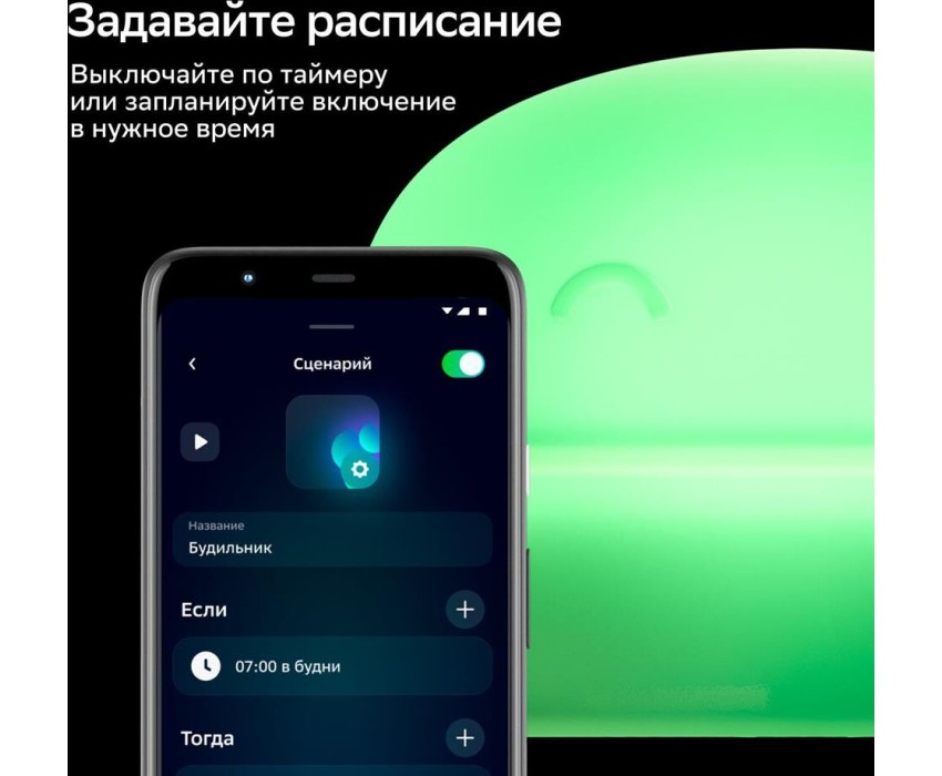 Особенности: Умный светильник выполнен из гипоаллергенного мягкого силикона. К нему приятно прикасаться и невозможно разбить.. Стандарт Wi-Fi: 802.11 b/g/n, 2.4 ГГц. Тип подключения: проводной. Типы беспроводного подключения: Wi-Fi, Bluetooth. Мобильное приложение: Салют. Совместимо с Android: да. Ориентация монтажа: настольный. Совместимо с iOS: да. Вес: 340. Материал: пластик/силикон. Регулировка цвета (поддержка RGB): есть. Подсветка: да. Рабочая температура: от -10 до +40. Световая индикация: ДА. Светосила: 200. Габариты упаковки (ед) ДхШхВ: 0.12x0.12x0.14. Страна производства: Китай. Часть умного дома: да. Гарантия: 24 мес.. Цветовая температура: 2700-6500 К. Цвет: белый. Размеры (ДхШхВ): 115 х 115 х 90 мм. Экосистема: Sber. Совместимость с голосовыми помощниками: Салют. Работает с: Салют