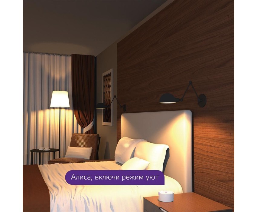 Рабочая температура: от 0 до +45. Напряжение: 220В. Передача данных по Wi-Fi: ДА. Стандарт Wi-Fi: 802.11 b/g/n 2,4 ГГц. Цоколь лампы: E27. Угол свечения лампы: 360. Тип: Умная лампа. Вид лампы: вкручиваемая. Габариты упаковки (ед) ДхШхВ: 0.125x0.12x0.165. Вес упаковки (ед): 11.67. Страна производства: Китай. Часть умного дома: да. Гарантия: 24 мес.. Размеры (ШхВхГ): 125 х 169 х 128 мм. Экосистема: Wiz, Яндекс. Совместимость с голосовыми помощниками: Алиса. Передача данных: по Wi-Fi. Цоколь: E27. Работает с: Алиса