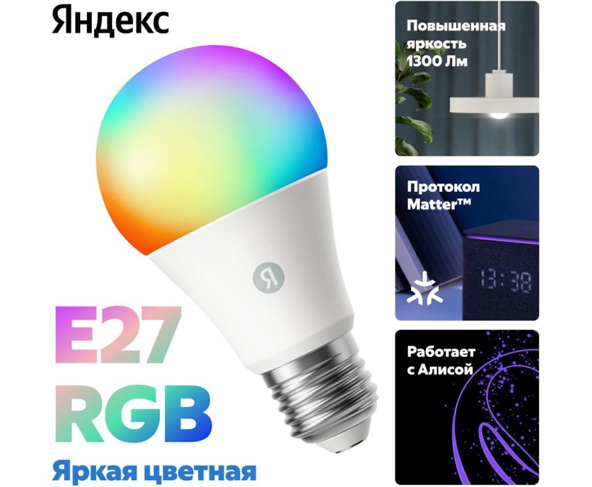 YANDEX Умная лампочка Яндекс E27 RGB, YNDX-00553