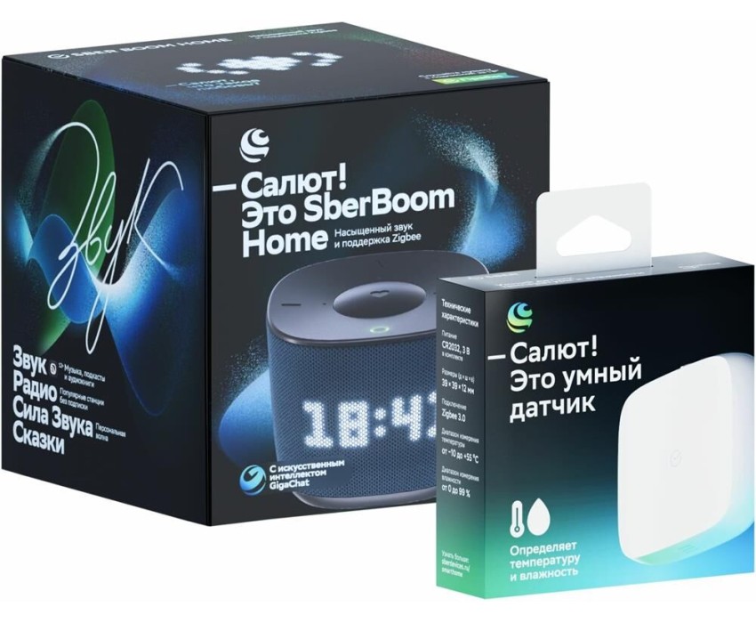 SBER Умная колонка Boom Home SBDV-00171D, 8Вт, с Салют, синий + Датчик температуры и влажности