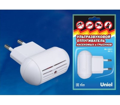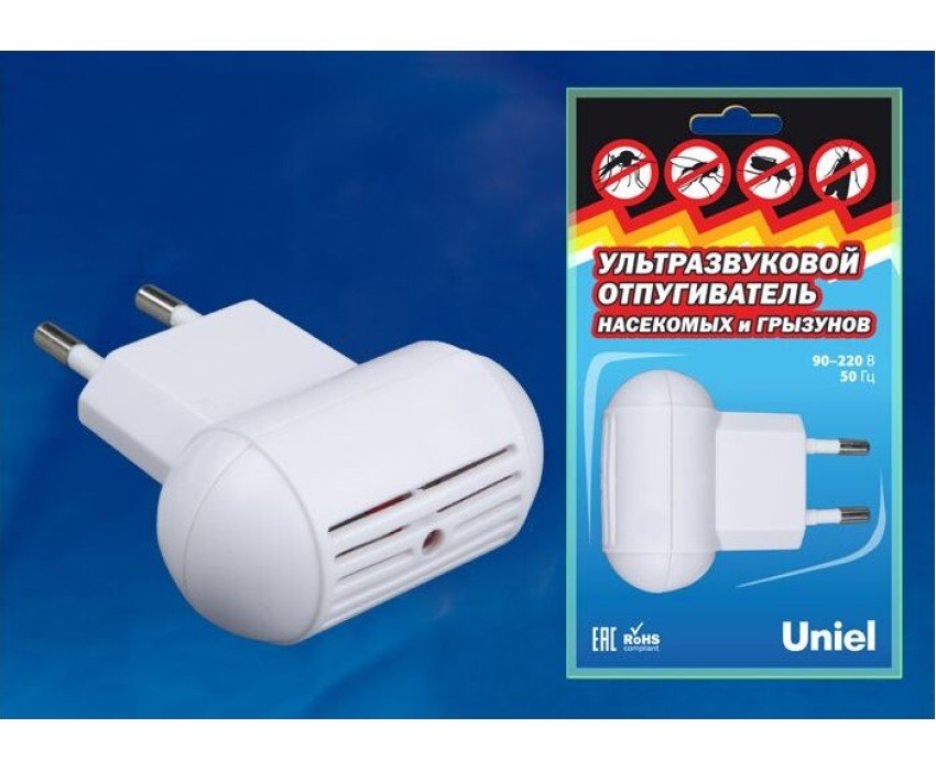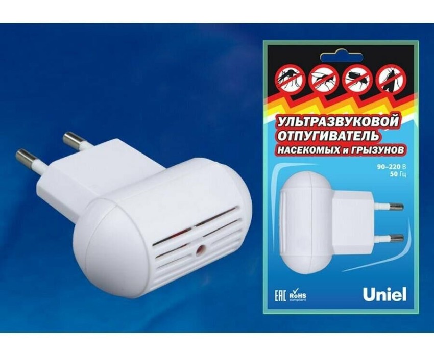 Ультразвуковой отпугиватель грызунов и насекомых. Мощность - 0,5Вт. Входное напряжение - 90-220В. Материал корпуса - пластик. Ультразвуковая частота - 3-20кГц. Диапозон рабочих температур - от 0 до +40. Зона действия - 30м2. Размер - 70х55х30мм. Цвет - белый.