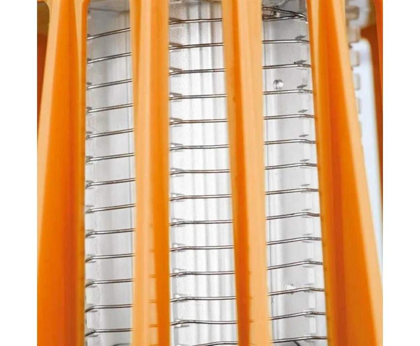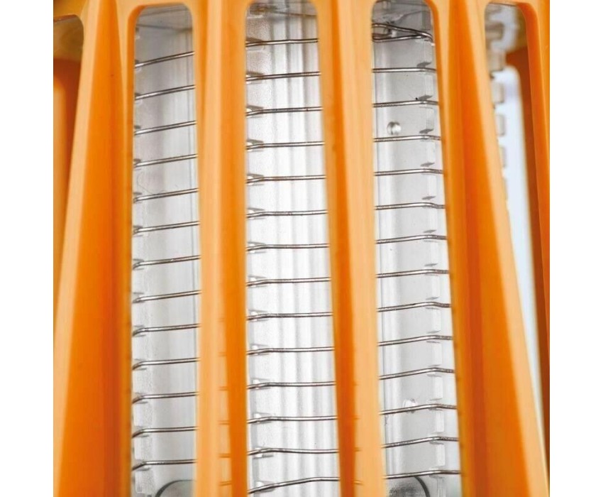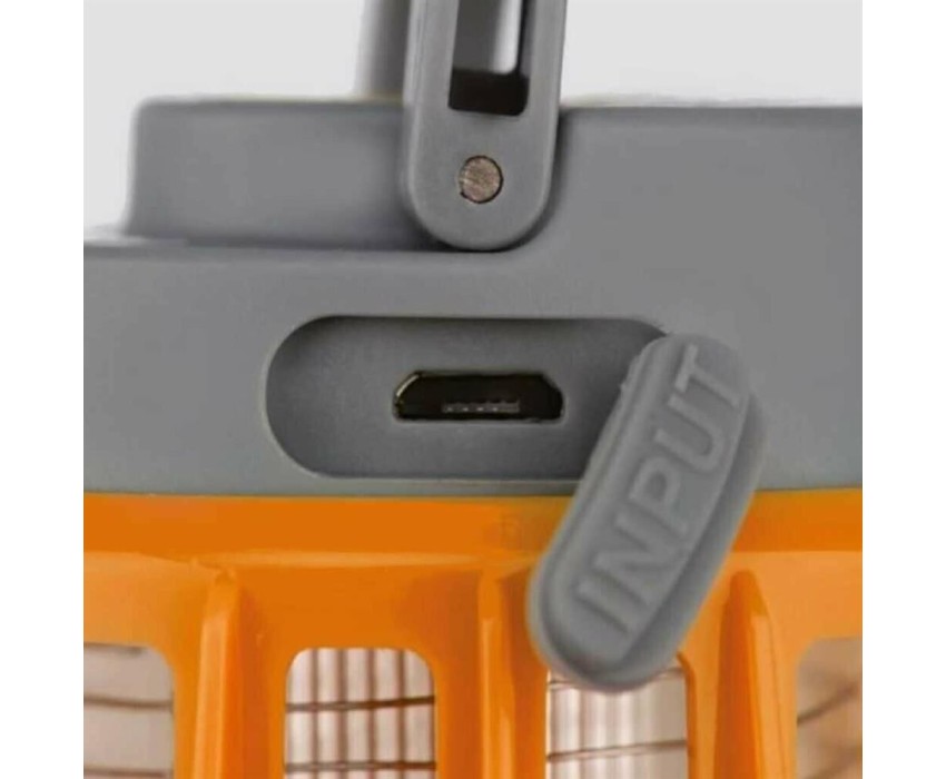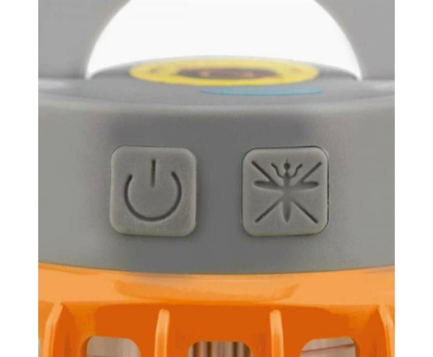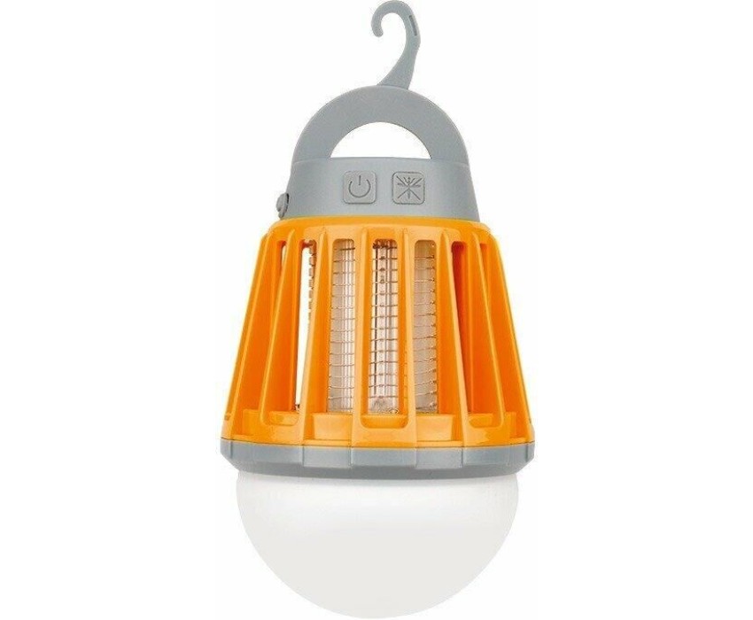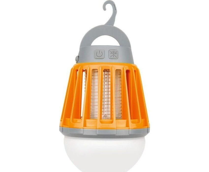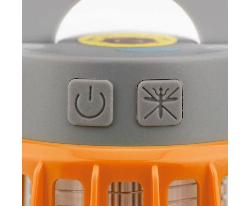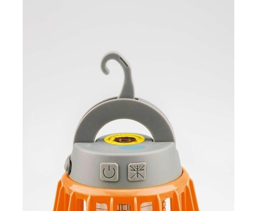 Антимоскитный кемпинговый фонарь сочетает в себе сразу 2 прибора: кемпинговый фонарь и уничтожитель насекомых. Прибор привлекает насекомых УФ свечением и мгновенно убивает их током. Может использоваться как внутри помещений, так и снаружи, например, для освещения палатки, беседки или просто как фонарь, благодаря влагозащищенному корпусу. Фонарь имеет разные уровни яркости: слабый, нормальный и сильный, также при помощи специальной насадки можно регулировать направленный или рассеянный тип света. Обладает емким аккумулятором и заряжается от сети 220 В, ноутбука, powerbank и любых других устройств, на которых есть USB порт. От аккумулятора устройство работает до 20 часов в режиме фонаря и до 30 часов в режиме уничтожителя! Режимы работы: 1. Антимоскитная лампа. Нажмите на кнопку с изображением комара. Сразу после нажатия начнет работать UV-LED подсветка (синее свечение) и на сетку поступит напряжение. Специальная ультрафиолетовая подсветка привлекает насекомых, подлетая к металлической сетке, они получают смерт
