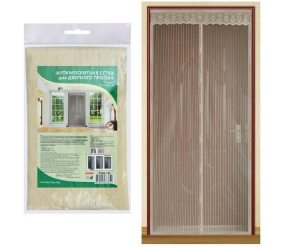 Антимоскитная сетка предназначена для размещения на дверном проеме у Вас дома или на даче. Сетка выполнена в виде занавесок, оснащена магнитами и ламбрекеном. Такая сетка не только выполняет защитные функции, предотвращая проникновение насекомых, пуха и пыли, но и несет декоративные функции, украшая ваше жилище и позволяя свежему воздуху проникать внутрь. Разместив такую антимоскитную сетку на дверном проеме Вы забудете о надоедливых насекомых и получите свободный вход и выход, благодаря смыкающимся магнитам. Комплект: -сетка 50х210см – 2шт.; -ламбрекен – 1 шт.; -набор кнопок – 1шт. Состав: сетка из 100% полиэстера, кнопки из металла и пластмассы.