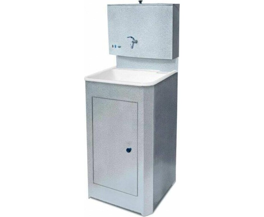 Модель: без ЭВН, пласт. мойка Без электроводонагревателя Умывальник из стали 0,7 мм Мойка пластиковая Габаритные размеры мойки: 40х50 Металлическая тумба Мойка из пластика Объем бака 20 литров Габаритные размеры: 125*50*41,5 Масса: 12,5 кг Гальваническое цинковое покрытие бака (новая технология); Продукция сертифицирована; Металлический шаровый кран; Усиленная стойка бака; Отсутствие петель (источник появления коррозии); Тумба на ножках (циркуляция воздуха под тумбой сохраняет ЛКП от преждевременной коррозии); Увеличенная дверца тумбы (для удобства выемки отливной тары); Увеличенная высота тумбы; Коробка евростандарта с ручками (удобство транспортировки). Пробка для слива воды в баке.