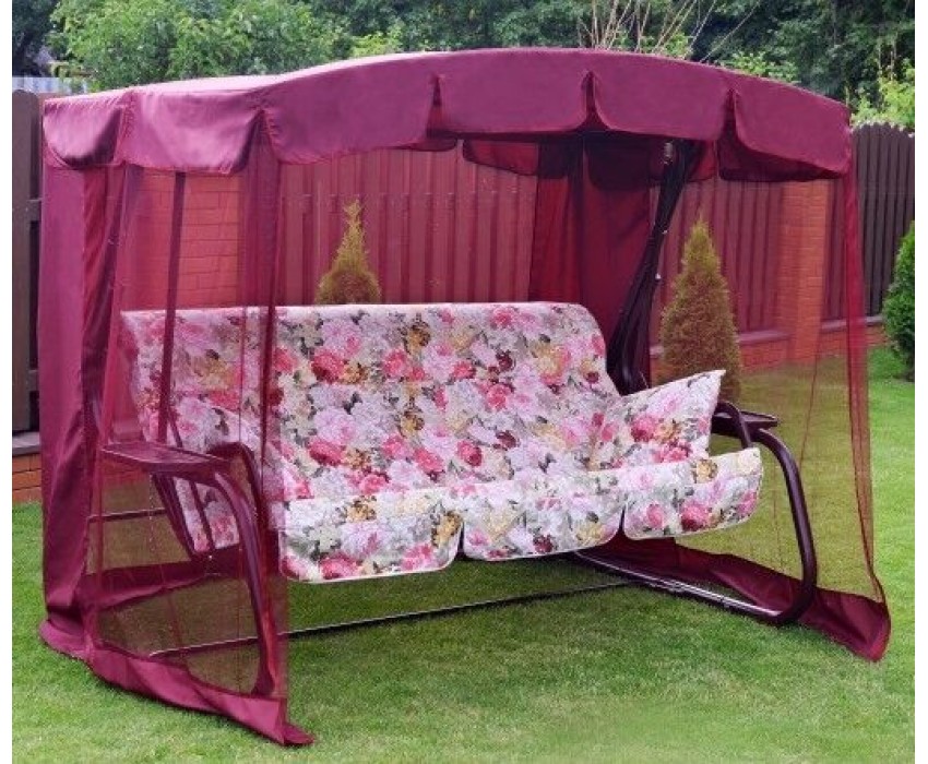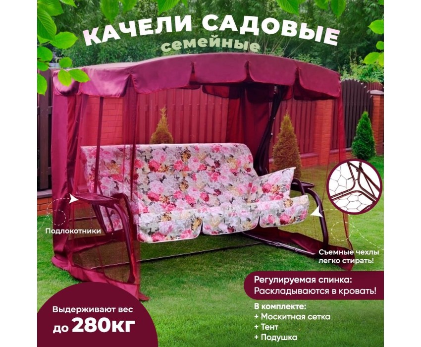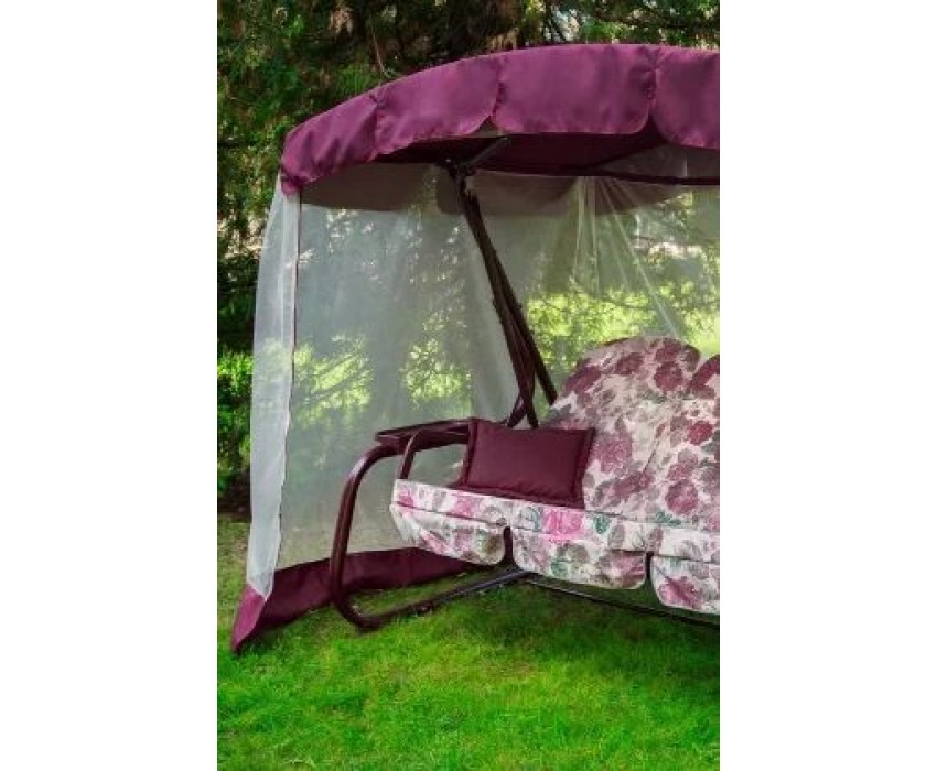 Габаритные размеры сиденья,спинки и тента (длина х ширина), мм: размеры сиденья: 1790х540 размеры спинки: 1790х755 размеры тента: 2220х1430 Каркас: труба стальная O 51х1,4мм; полимерное покрытие; полка - 2 шт. Мягкий элемент: ткань 45% п/э – 55% хлопок, плотность 108-111г/м2 , наполнитель мягкого элемента поролон толщиной 80 мм, наполнитель подушек - синтепон (полотно полиэфирное объемное). Подушки – 2шт. Тент: Тент ткань с водоотталкивающей отделкой 100% п/э плотность 141 г/м2 , с противомоскитной сеткой (полотно гардинное основовязаное 100% п/э плотность 39г/м2 - фиксация сетки на тканевом тенте осуществляется с помощью горизонтальных и вертикальных застежек – «молний». Регулировка спинки: для раскладывания спинки поднимается ручка трансформации и фиксаторы, расположенные на спинке, защелкиваются на дуге.