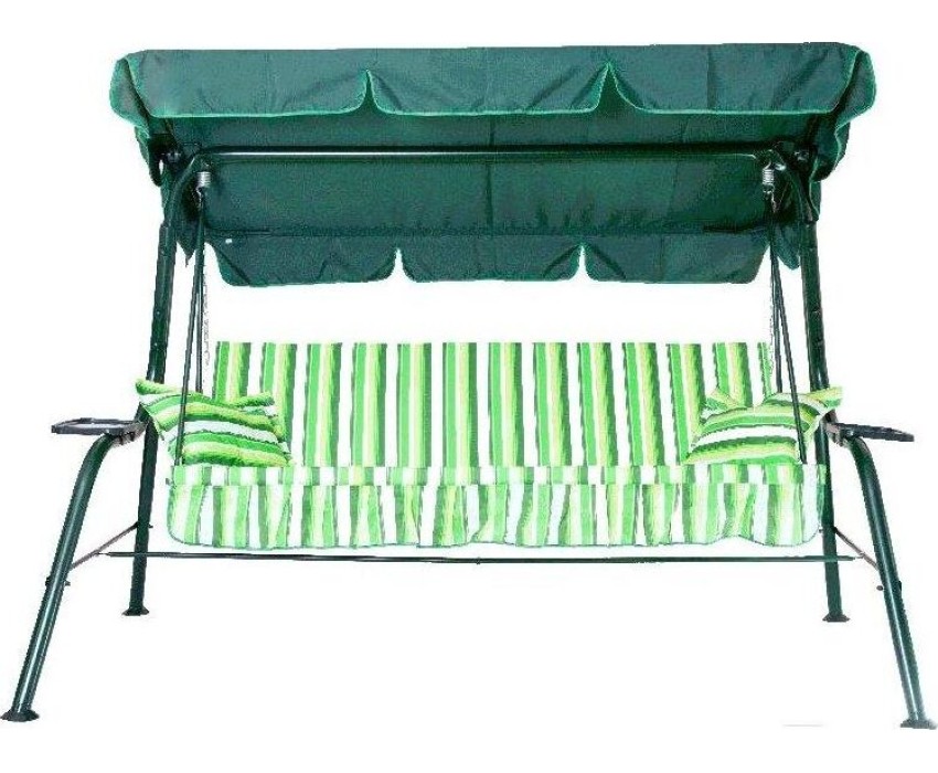 Габаритные размеры изделия (ДхШхВ) 2310х1260х1478 мм, размеры сиденья,спинки и тента (ДхШ) размеры сиденья: 1706х497 мм, размеры спинки: 1706х497 мм, размер тканевого тента: 1840х1020 мм, Максимальная нагрузка 210 кг, Каркас: труба стальная Ф45х1,4мм; полимерное покрытие; полка - 2 шт. Мягкий элемент: ткань 45% п/э – 55% хлопок, плотность 108-111г/м2, наполнитель мягкого элемента (листовой поролон 50мм), наполнитель подушек (крошка поролона). Подушки – 2шт. Тент: ткань с водоотталкивающей отделкой 100% п/э плотность 120г/м2. Регулировка спинки: осуществляется звеньями цепи на требуемый угол наклона. .Размеры упаковки: 526х186х1966 мм, Вес изделия: нетто 35,2 кг.