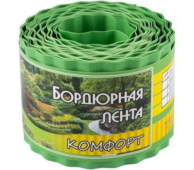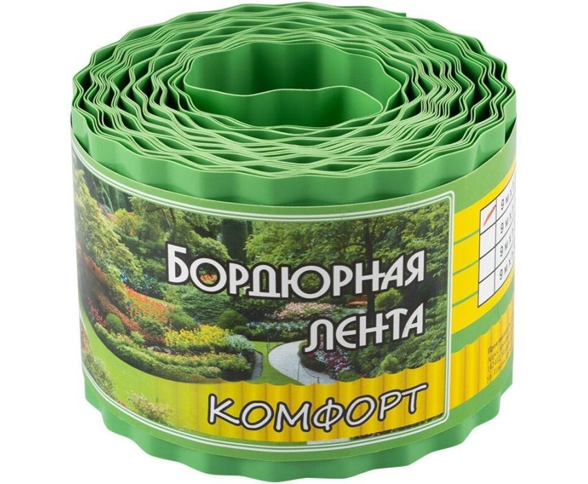 Назначение: для оформления клумб, грядок, газона, приствольных кругов деревьев и кустарни Материал: пластик, содержащий добавки, повышающие устойчивость материала к воздействию ультрафиолетовых лучей. Высота ленты -100мм, Длина ленты - 9м, Толщина ленты - 0,6мм, Диаметр рулона - 150мм, Цвет - зеленый Транспортная упаковка: 2 гофроподдона (сверху и снизу) обмотаны стрейч-пленкой.