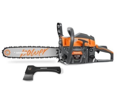 Тип: Бензопила. Длина пильной шины: 16" (40 см). Электропитание: 0. Тип аккумулятора: 0. Натяжение цепи: с использованием инструментов. Вес товара: 6.6. Топливный бак, объем: 0.55. Бак смазки цепи, объем: 0.31. Электронное зажигание: есть. Рабочий объем двигателя: 45.5. Мощность двигателя, л.с.: 3.2. Тип двигателя: бензиновый. Особенности: Электронное зажигание C.D.I.; Антивибрационная система DAEWOO; Корпус двигателя из металла; Поршневая группа с никасиловым покрытием; Моментальная остановка цепи; Эргономичная рукоятка включения; Металлический зубчатый упор. Тип бензинового двигателя: 2-х тактный. Шаг цепи: 0.325. Количество звеньев цепи: 66. Ширина паза цепи: 1.5 мм. Комплектация: Бензопила, топор. Максимальная частота вращения: 10800. Тип топлива: АИ-92. Габариты упаковки (ед) ДхШхВ: 0.45x0.261x0.3. Вес упаковки (ед): 8.2. Гарантия: 12 мес.. Длина шины: 16" (40 см). Объем двигателя: 45.5 см3. Вес: 6.6 кг. Двигатель: бензиновый, 2-х тактный, макс. 10800 об/мин, 3.2 л.с. Аккумулятор: 0. Цепь: шаг 0.325, ширина паза 1.5 мм, количество звеньев 66