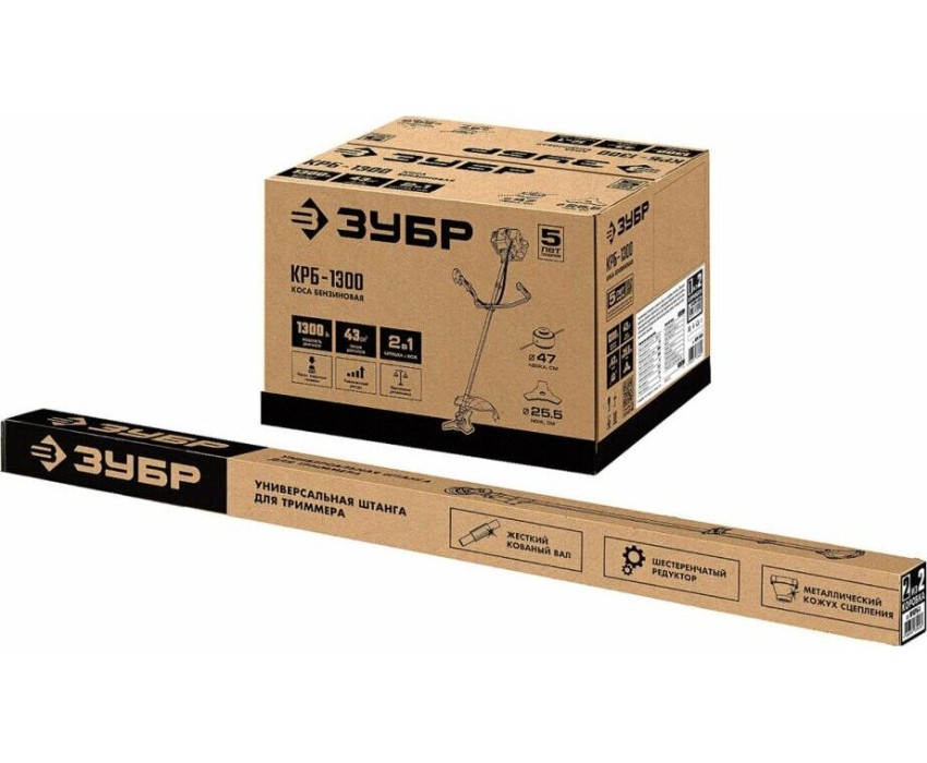 Триммер бензиновый ЗУБР КРБ-1300 бензокоса, 1.3 кВт / 1.7 л.с., 43 см3 (2 коробки)