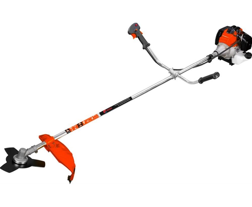 Двигатель 2-х тактный, с воздушным охлаждением. Тип зажигания электронный, бесконтактный. Объем двигателя, см3 63,0. Зазор свечи зажигания, мм ~0,7. Мощность двигателя, кВт(л.с) 3,7(4,9). Топливо смесь бензина АИ-92 (неэтилированного). с маслом для 2-х тактных двигателей. Топливная смесь 25:1. Тип свечи зажигания для 2-х тактных двигателей. Способ запуска ручной стартер. Ширина захвата (нож/леска), мм 254/400. Система подачи лески полуавтоматическая.