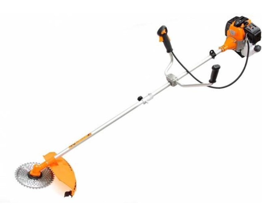 Тип двигателя: бензиновый. Расположение двигателя: верхнее. Форма штанги: прямая. Мощность двигателя (Вт): 1250. Объем двигателя: 43. Кол-во тактов двигателя: двухтактный. Емкость топливного бака: 0.95. Режущий элемент: леска и нож. Диаметр круга стрижки: 46. Диаметр используемой лески: 2.4. Размер используемого ножа: 230. Тип крепления триммера: ранцевое. Вес товара: 8. Комплект поставки: Триммер бензиновый, ранцевый ремень, документация, диск (нож), катушка с леской.. Особенности: Усовершенствованный дизайн; Легкий доступ к воздушному фильтру; Удобное управление, вынесенное на рукоятку; Жесткий вал на 6-ти опорных подшипниках; Наплечный ранец; Облегченный диск с твердосплавными зубьями; Хромированный цилиндр; Усиленный редуктор. Мощность двигателя (л.с.): 1.7. Обороты двигателя: 7600. Материал ножа: металл. Тип косильной катушки: ручная. Форма рукоятки: U-образная. Тип штанги: неразборная штанга. Посадочный диаметр диска: 25.4. Расход топлива: 1.3. Уровень шума: 110. Габариты упаковки (ед) ДхШхВ: 1.651x0.11x0.12. Вес упаковки (ед): 8.8. Страна производства: Китай. Гарантия: 12 мес.. Вес: 8 кг. Двигатель: бензиновый, 1.7 л.с., двухтактный, расположение верхнее. Режущая система: леска и нож
