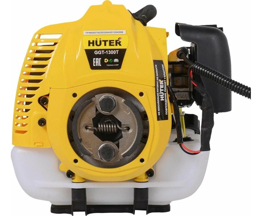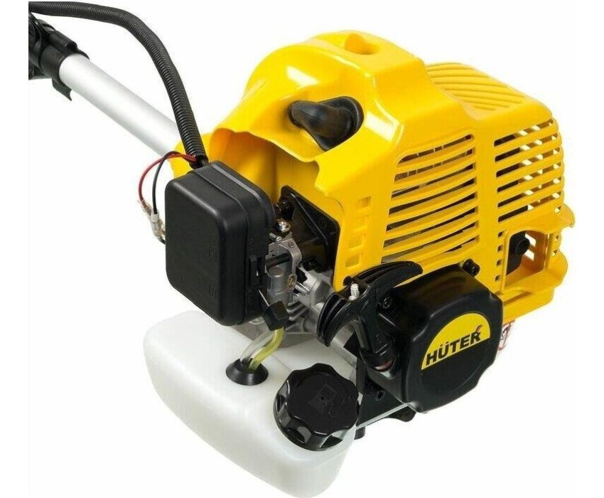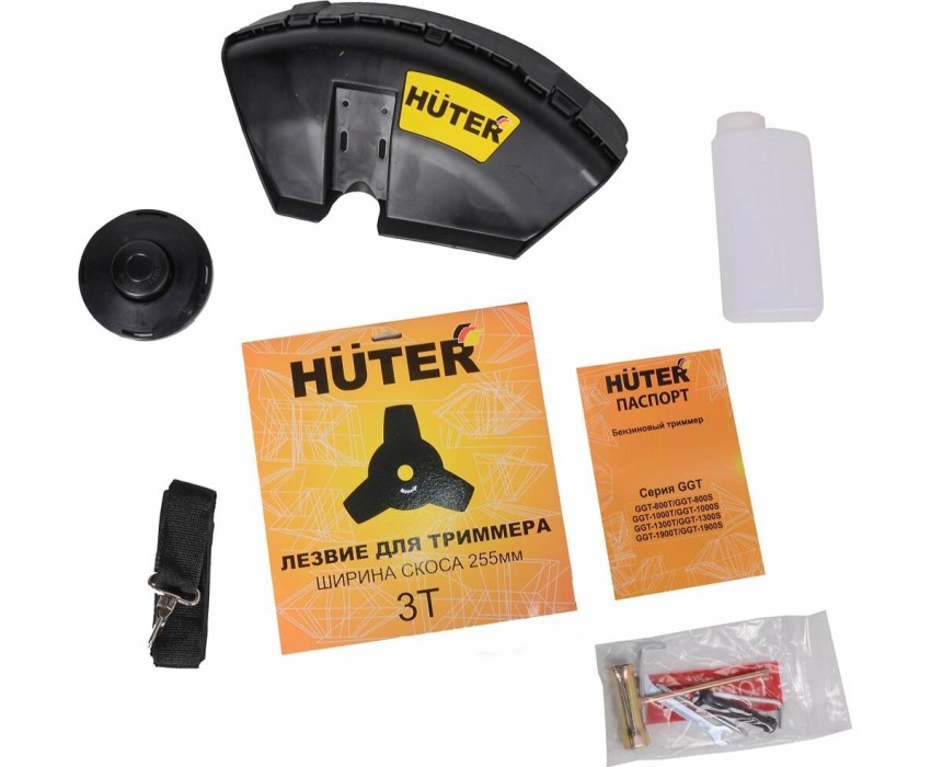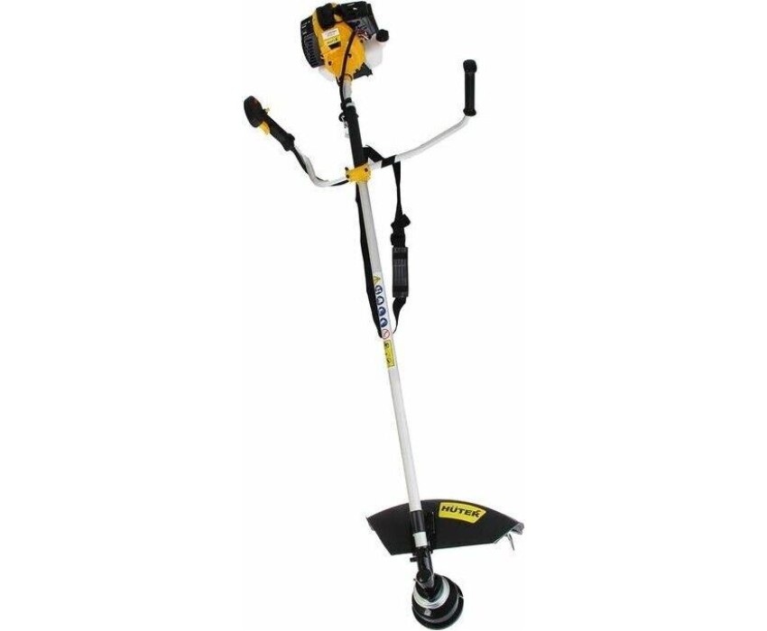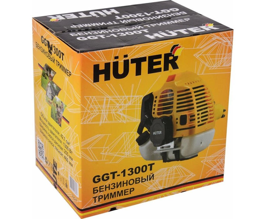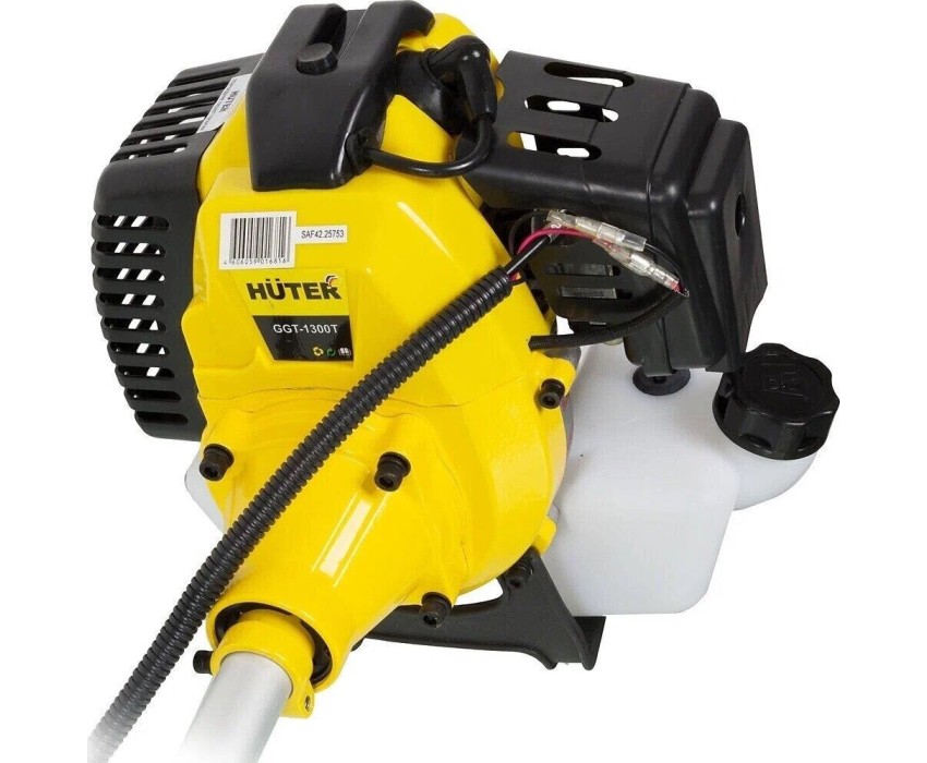 Бензиновый триммер Huter GGT-1300T – это устройство, которое используется для обработки газона на приусадебных территориях. С его помощью можно обеспечить ровный срез травы, бурьяна или густых зарослей. Оборудование подходит для ручного применения, отличается относительно небольшим весом и высокой рабочей производительностью. Триммер оснащается бензиновым двигателем, а в качестве топлива используется бензин с примесью масла. С помощью системы воздушного охлаждения обеспечено сохранение оптимальной рабочей температуры в процессе обработки территории. Мощность: 1300 Вт. Тип двигателя: бензиновый. Число тактов: 2. Способ охлаждения: воздушный. Объем двигателя: 42,7 см3. Мощность двигателя: 1,77 л.с.. Тип топлива: бензин АИ-92. Тип штанги: неразъемная. Система гашения вибрации: есть. Тип режущего инструмента: леска / нож. Ширина скашивания леской: 460 мм. Ширина скашивания ножом: 255 мм. Резьба триммерной катушки: М10х1,25 LH. Посадочный диаметр: 25,4 мм. Тип ножа: 3Т. Приводной вал: гибкий.