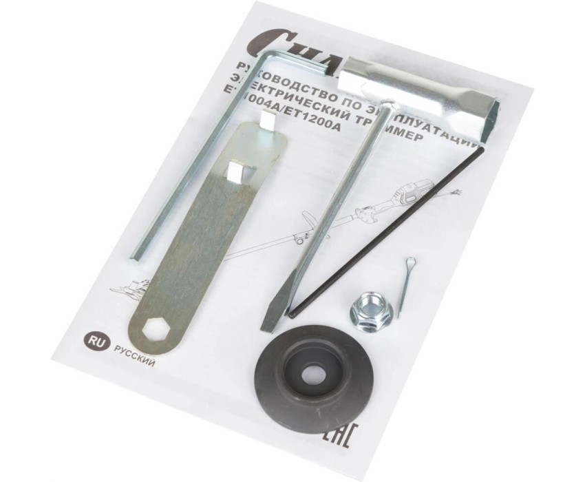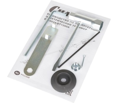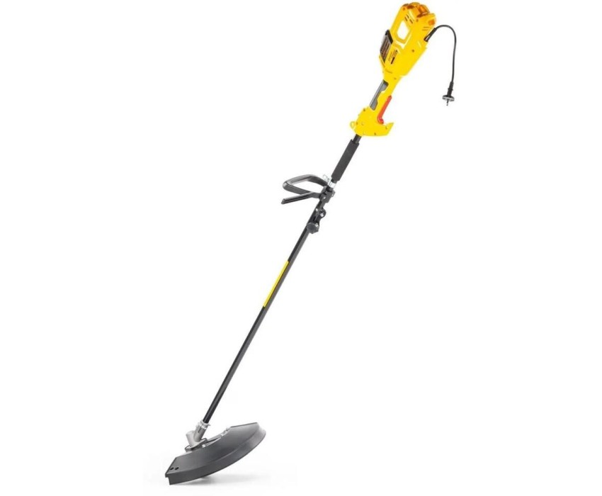 Номинальная мощность двигателя, (Вт) 1000. Вес без режущей насадки, (кг) 4. Напряжение сети, (В, Гц) 230/50. Расположение двигателя верхнее. Вид штанги прямая. Тип штанги разъемная. Длина штанги, (мм) 1465. Максимальные обороты без нагрузки, (об/мин) 7500. Тип рукоятки Р-образная. Толщина корда, (мм) 2,4. Ширина кошения кордом/ножом, (мм) 350/230. Тип крепления триммерной головки Гайка M10*1,25 левая.