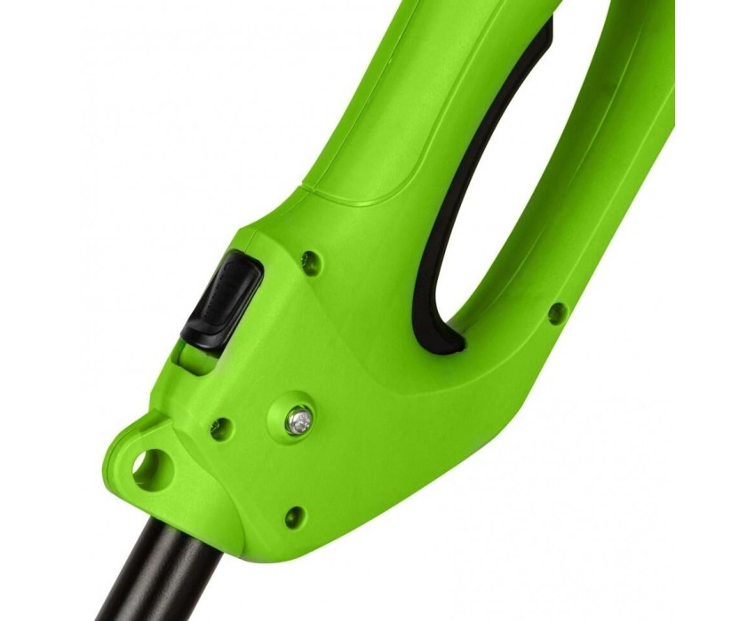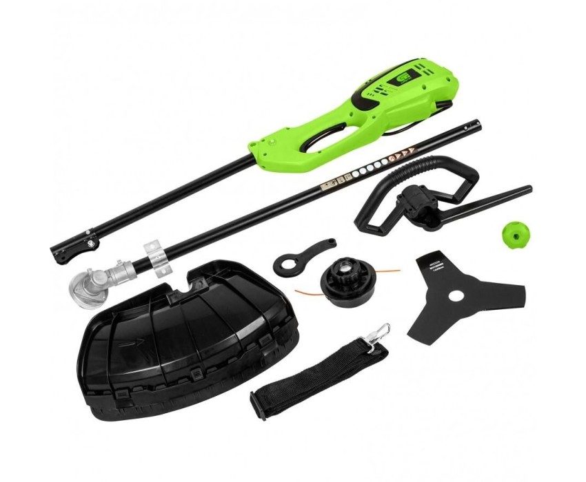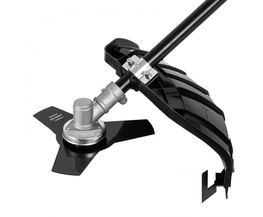 Мощность 1,2 кВт. Напряжение 230 В. Максимальный диаметр лески 2 мм. Ширина скашивания леской 380 мм. Ширина скашивания ножом 230 мм. Крепление шпули M10 x 1.25 LH. Режущий элемент {леска,нож}. Приводной вал жесткий стальной вал. Тип ручки D-образная. Тип штанги разборная. Тип скидки Силовое.