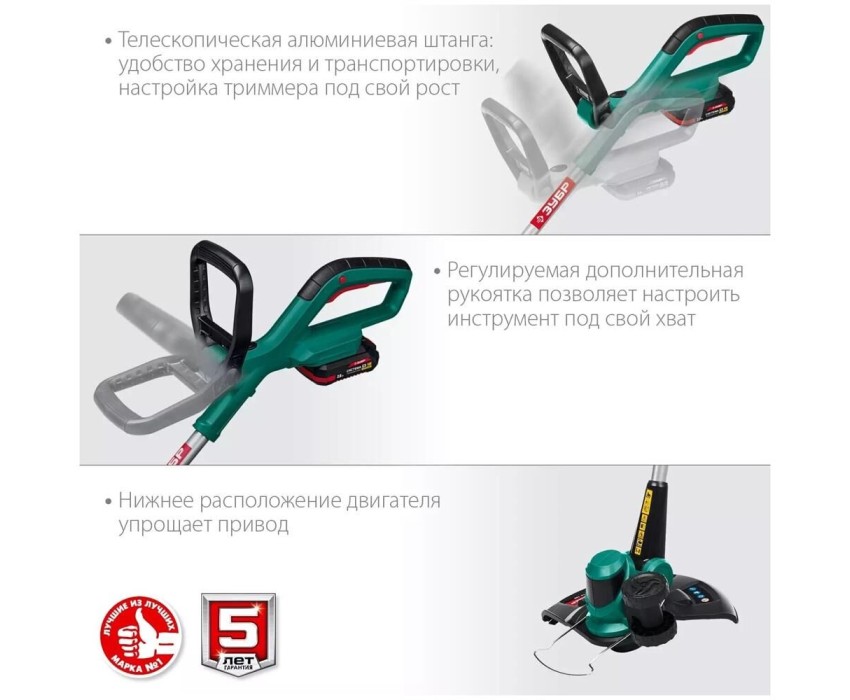 ЗУБР Триммер электрический ТА-185-21 аккум. разбор.штан. реж.эл.:леска