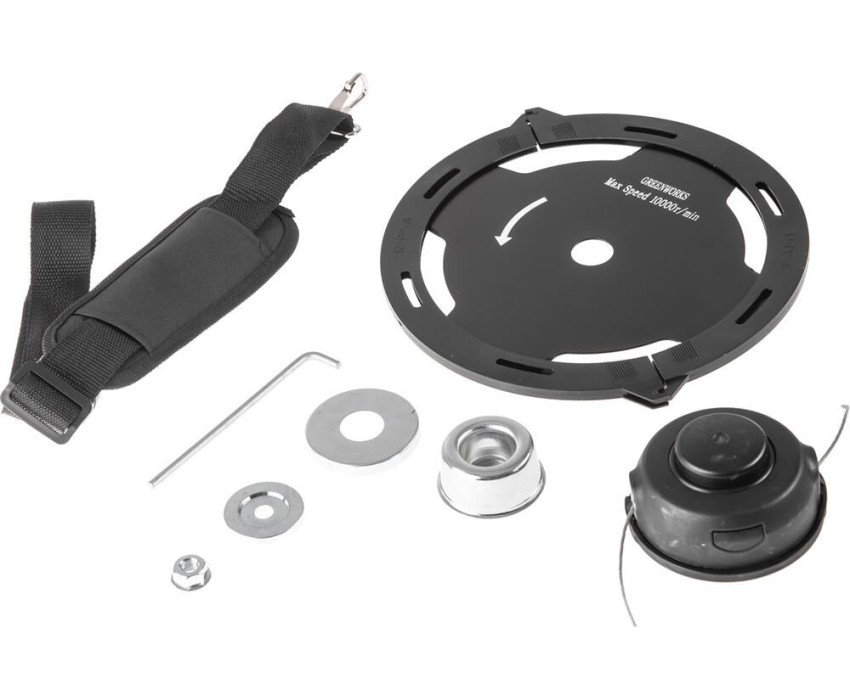 Тип двигателя: электрический. Расположение двигателя: верхнее. Форма штанги: прямая. Тип электропитания: от аккумулятора. Напряжение аккумулятора: 40. Тип аккумулятора: Li-Ion. Режущий элемент: леска и нож. Диаметр круга стрижки: 35. Диаметр используемой лески: 2. Размер используемого ножа: 350. Тип крепления триммера: плечевой ремень. Вес товара: 8. Комплект поставки: G-MAX 40V аккумуляторный триммер 35 см; Пильный диск; Руководство по эксплуатации; Гарантийный талон. Внимание: этот комплект поставляется без аккумулятора и зарядного устройства.. Особенности: Триммер аккумуляторный Greenworks 40 вольт (модель GD40BC) - отличная замена электро или бензиновому триммеру, он с легкостью справиться с высокой травой, а благодаря пильному диску (в комплекте) можно резать крупный кустарник.. Материал ножа: металл. Тип косильной катушки: полуавтоматическая. Форма рукоятки: D-образная. Тип штанги: разборная штанга. Аккумулятор в комплекте: отсутствует. Зарядное устройство в комплекте: отсутствует. Габариты упаковки (ед) ДхШхВ: 0.995x0.27x0.18. Вес упаковки (ед): 7.1. Гарантия: 24 мес.. Тип электропитания: от аккумулятора. Аккумулятор: Li-Ion, 40 В. Режущая система: леска и нож. Вес: 8 кг. Двигатель: электрический, расположение верхнее