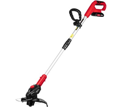 Триммер аккумуляторный MTX GT-260 58730 с аккумулятором Li-Ion напряжением 18 В предназначен для скашивания газонной травы, удаления сорняков и ухода за придомовой территорией. Поставляется с леской диаметром 1,6 мм, ширина скашивания составляет 260 мм. Модель оснащена телескопической штангой, а поворотная головка позволяет работать как в режиме триммера, так и кромкореза. Преимущества Удобство работы и хранения — триммер оснащен телескопической штангой. Автономность — техника не зависит от сети, что позволяет ухаживать за газоном даже в самых отдаленных участках сада. Эффективная работа — конструкцией предусмотрен регулятор угла наклона режущей головки. Комфортная эксплуатация — дополнительная рукоятка позволяет легко удерживать и направлять триммер. Безопасность — защитный кожух исключает вылет травы, камней и земли на пользователя. Работа без перерывов — специальный индикатор подсказывает, когда нужно поставить АКБ на зарядку. Экологичность — аккумуляторный инструмент работает без вредных выхлопов. Полная комплектация — к триммеру прилагается аккумулятор емкостью 2 А·ч с защитой от глубокого разряда и зарядное устройство, которое заряжает АКБ за 1,5 часа. Небольшой вес 2 кг — триммер несложно удерживать в руках даже длительное время.