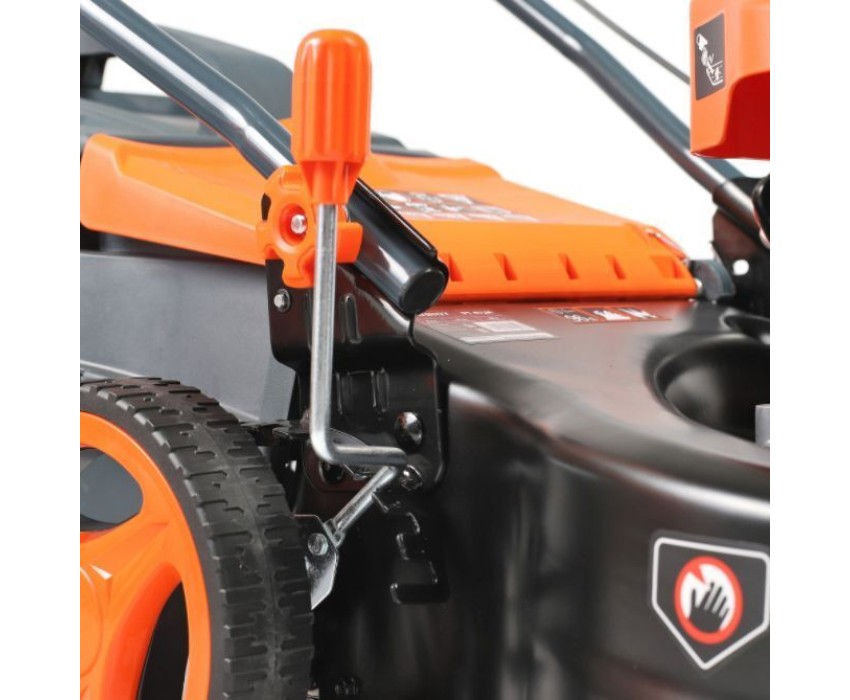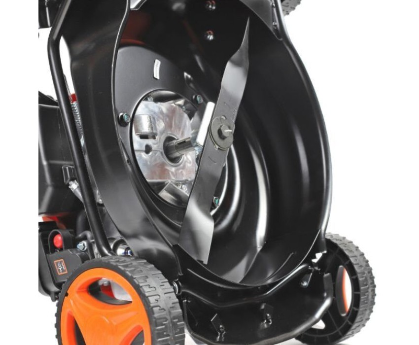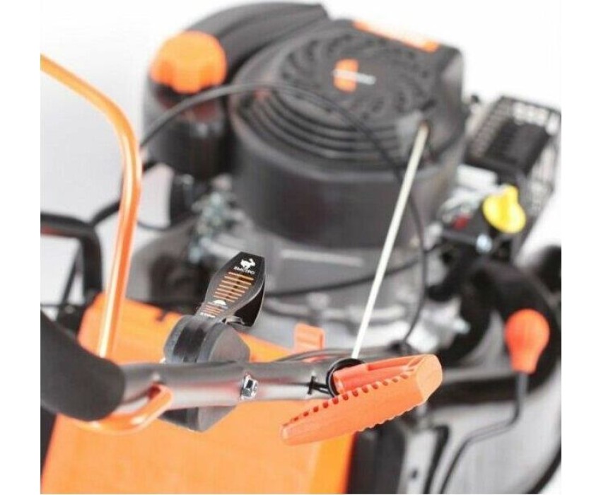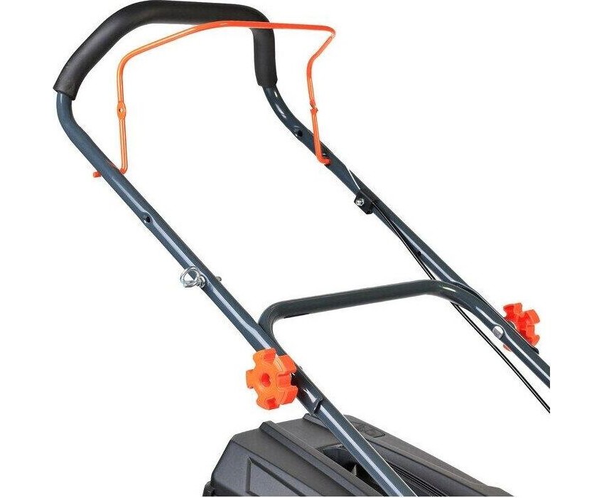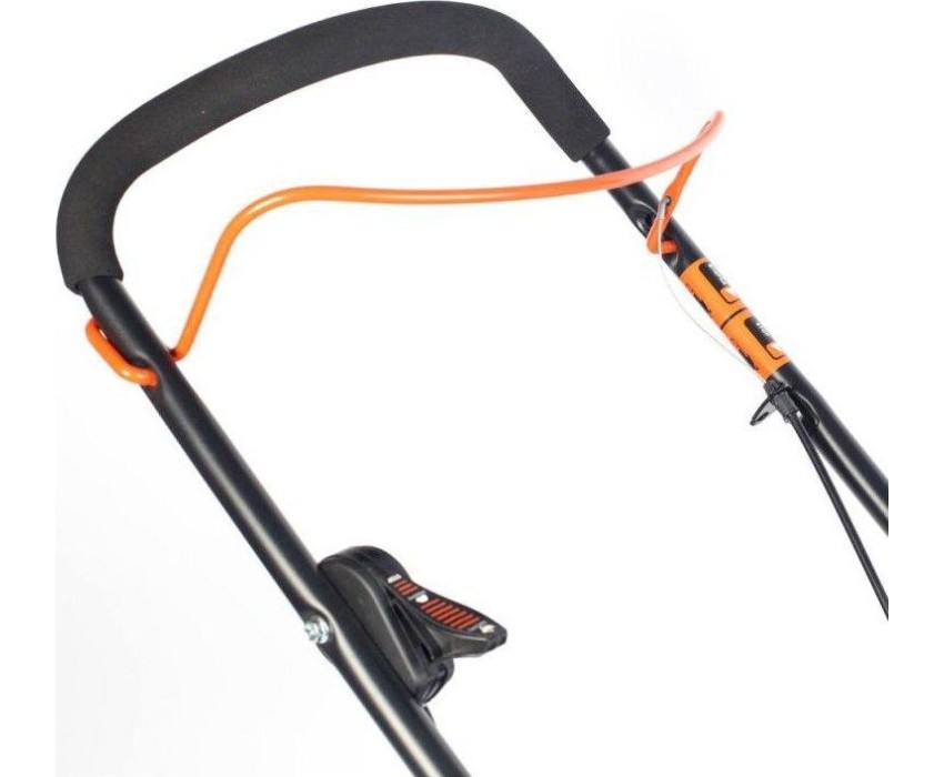 регулировка высоты скашивания, тормоз двигателя, складная ручка