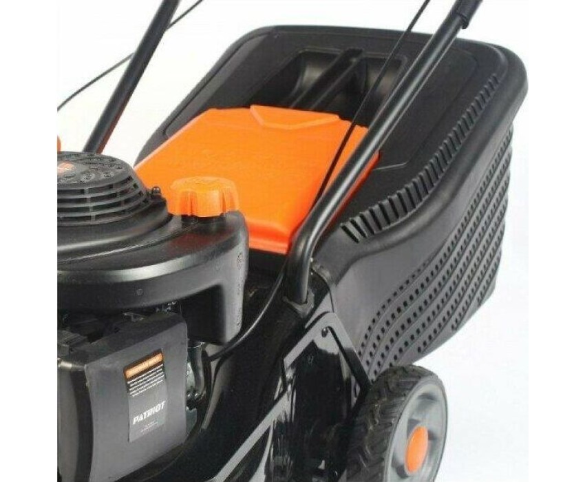 Объем двигателя, см3- 123, Объем топливного бака, л 0.8, Объем масляного бака, л 0.6, Частота вращения, об/мин 2800, Объем травосборника, л 40, Ширина скашивания, см 42, Количество режимов регулировки высоты 6, Высота скашивания, мм 25-70, Диаметр колес (передние/задние), мм 152/178, Тип рукоятки складная, Тактность двигателя 4-х тактный, Тип питания бензиновый, Система старта ручной, Регулировка высоты центральная, Материал корпуса сталь, Материал травосборника пластик/ткань, Двигатель Patriot, Регулировка оборотов двигателя на рукоятке, Задний выброс, Мощность двигателя, л.с. 3.5.