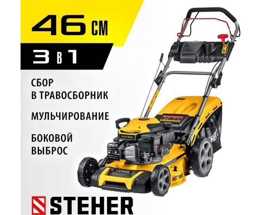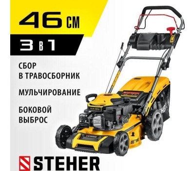 Газонокосилка бензиновая STEHER 460 мм, 4.5 л.с., бензиновая самоходная газонокосилка (GLM-460p)