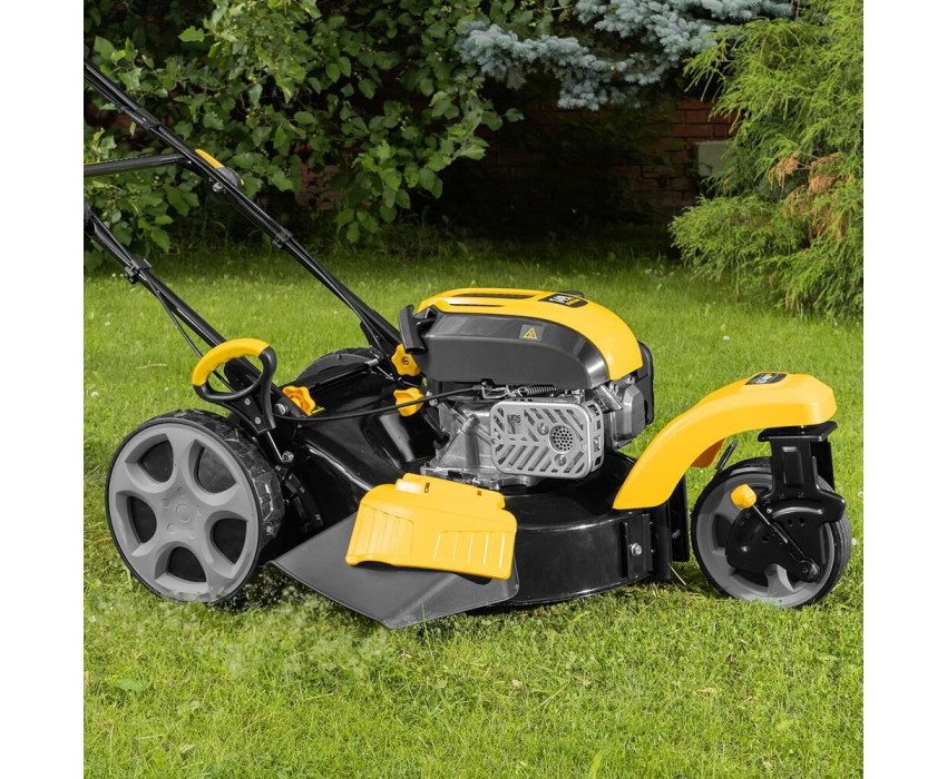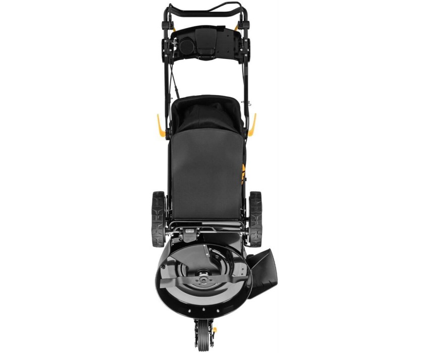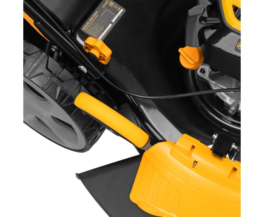 - Удобный сбор скошенной травы — комбинированный травосборник объемом 60 л быстро очищается и не нуждается в частом опустошении.