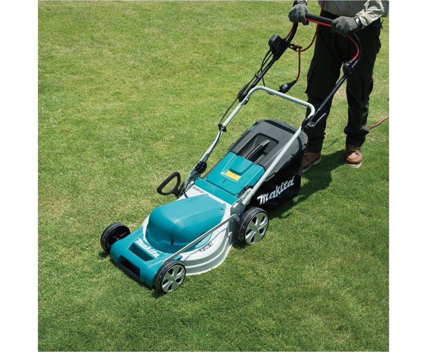 Газонокосилка Makita ELM4121 обеспечивает три системы кошения: кошение, сбор в травосборник, мульчирование. Высоту рукоятки можно отрегулировать под пользователя любого роста. Один рычаг позволяет изменять высоту скоса от 20 до 75 мм. Количество положений скашивания - 7. Травосборник, рассчитанный на 50 л отходов, не требует частого опустошения. Также контейнер оснащен индикатором наполнения. Технические характеристики Makita ELM4121 Вес, кг 14,5 Габариты, мм 1465х530х1135 Ширина скашивания, см 41 Мульчирование есть Самоходная нет Травосборник есть Площадь, м? 800 Система передачи ременная Асинхронный двигатель нет Кол-во режимов регулировки высоты 7 Мощность (кВт) 1,6 Регулировка высоты центральная Тип травосборника мягкий с жестким верхом Высота скашивания max, мм 75 Высота скашивания min, мм 20 Материал корпуса нержавеющая сталь Объем травосборника, л 50 Тип ручки регулируемая, складная