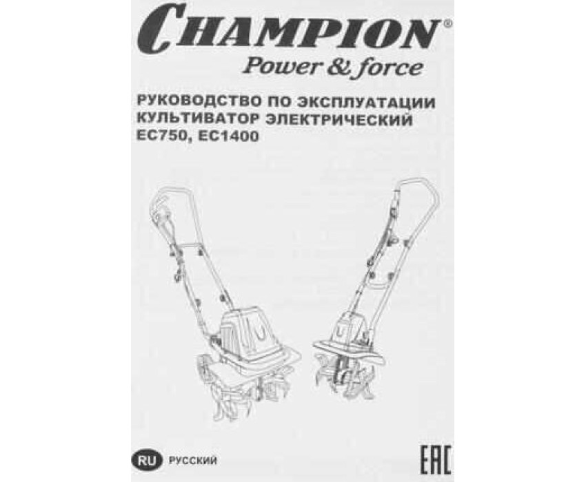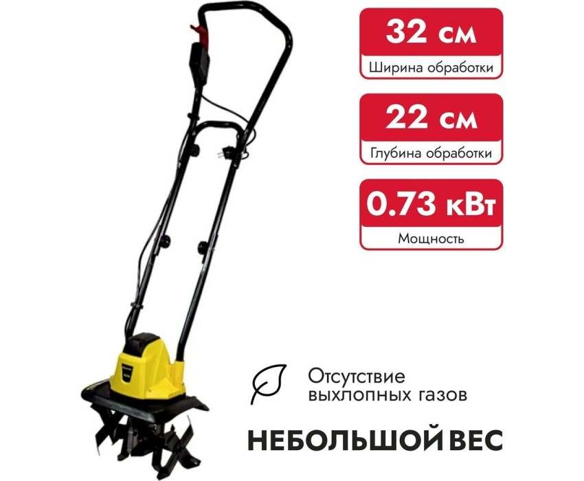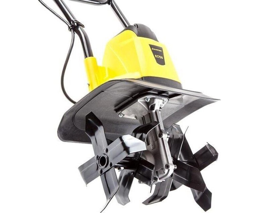 Электрический культиватор Champion EC750 с синхронным двигателем мощностью 750 Вт используется в парниках и теплицах. Оснащен металлическими фрезами и обрабатывает почву на глубину до 20 см. Отличается небольшим весом, поэтому легко переносится за ручку. Уровень шума относительно невысок. Ширина захвата составляет 32 см. Технические характеристики Champion EC750 Вес, кг 7,2 Габариты, см 325х280х1430 Глубина обработки, мм 200 Ширина обработки, мм 320 Тип двигателя электрический Мощность (Вт) 750 Тип редуктора червячный Скорость вращения фрез, об/мин 380 Напряжение, В 230.