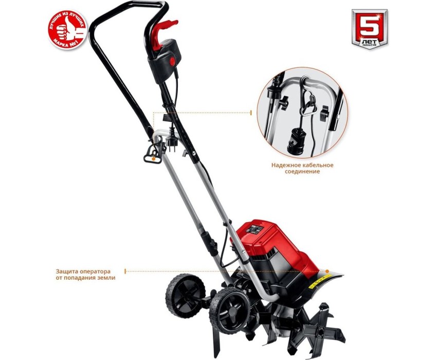 Cошник. Глубина вспашки, мм200. Тип редуктора червячный. Ширина вспашки, мм400. Число скоростей 1 вперед. Тип двигателя электрический, синхронный. Мощность, Вт1800. Масса изделия, кг11.6. Масса в упаковке, кг13.5. Габариты, см41x44x133. Колеса для перемещения.